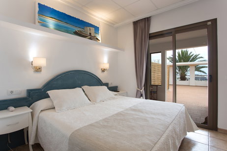 Camera con vista mare e solarium, situata al piano superiore e dotata di accesso a una grande terrazza.